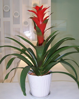 夏季觀賞鳳梨應放置于光線明亮處或半光照下培養,保持盆土的潮濕,追肥。同時增加向葉片和四周噴霧灑水的次數,保持較高的空氣濕度,在室內培養的植株應注意室內的通風。