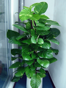 大型常綠藤本植物。生長于熱帶地區常攀援生長在雨林的巖石和樹干上,可長成巨大的藤本植物。綠色的葉片上有黃色的斑塊。其纏繞性強,氣根發達,既可讓其攀附于用棕扎成的圓柱上,擺于門廳、賓館,也可培養成懸垂狀置于書房、窗臺,是一種較適合室內擺放的花卉。
